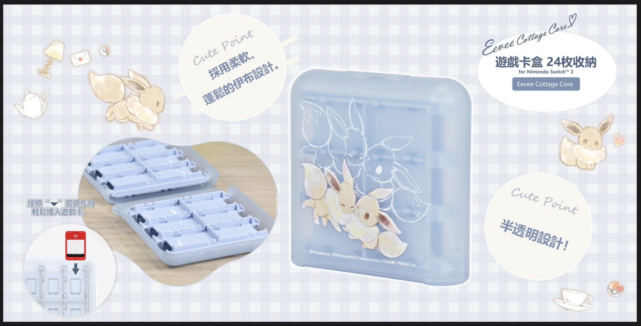 包裝盒內容 : 1. NS2 24個裝遊戲卡收納盒 伊布鄉村風格
